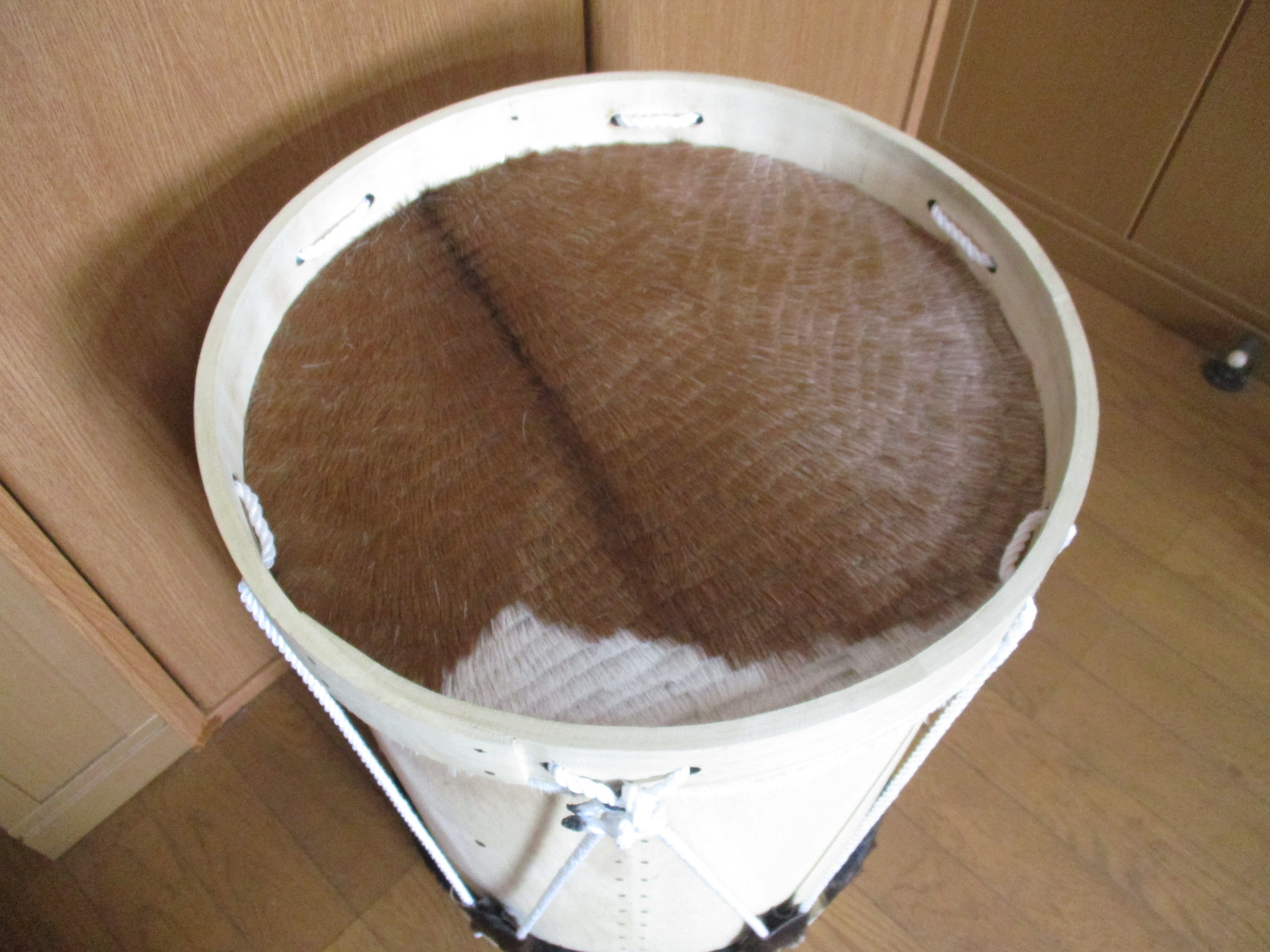 ◎ボンボ、張替用皮。万一破けた時に交換してください。 最近皮の入手が困難になってきています。 御入用の時にはお早めにお求めください。 直径が約70センチから80センチです。 大き目でしっかりした皮です。 在庫切れ